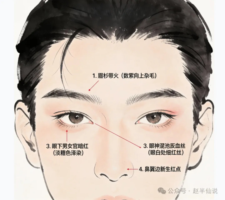 面相这东西,得凑一块儿看。要是下面 2、3 个信号都占了,那你丙午年碰着 “情劫” 的概率可就往上蹿了,必须把弦绷紧: