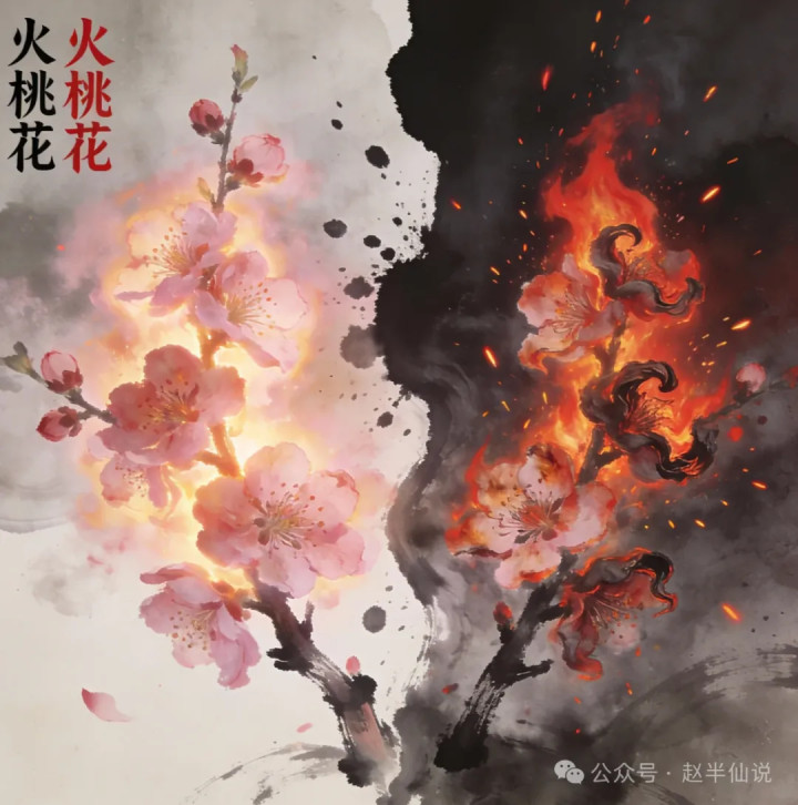 “哎,就这意思。” 我指了指窗外被前几日艳阳晒卷边的芭蕉,“丙午年,天地跟烧干锅似的。火这东西,主礼也主急,主热情也主暴烈。照到情缘上,就容易催出‘火桃花’—— 来得跟窜天猴似的,‘嗖’一下就炸起来,温度高得能裹住你,可去得比阵风还快,烧完就剩点灰,搞不好还得燎你一手泡。您眉梢那点‘火气’、眼下那片‘浮火’,就是被这年景的气场‘燎’出来的外应。”