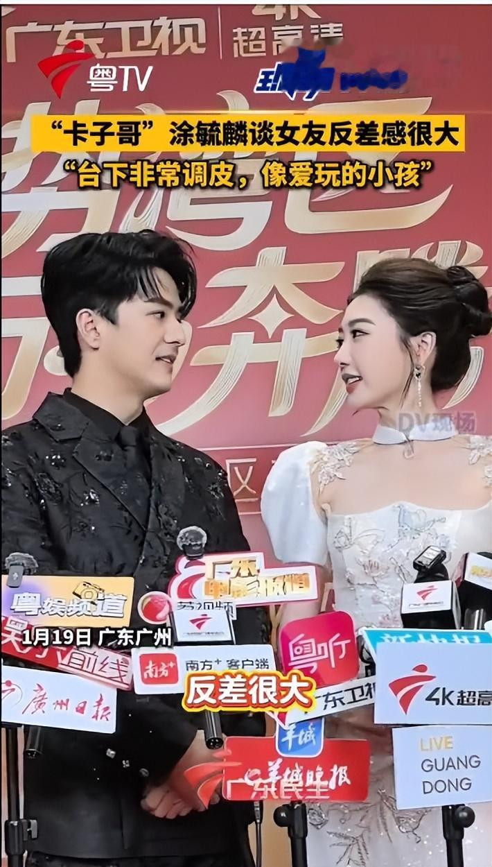 涂毓麟向记者谈到女友孙乐言的反差感很大,她在台上是专业的主持人,“台下非常调皮,像爱玩的小孩”。