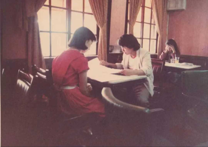 从1982年开始,朱天文作为侯孝贤的主要编剧,在之后40多年里合作过18部电影。她在九龙湖的榕树下回忆这段漫长的旅程,从中撷取了一个瞬间。1984年,朱天文与侯孝贤在明星咖啡馆的三楼讨论《冬冬的假期》剧本时,杨德昌在旁边拍下了一张照片: