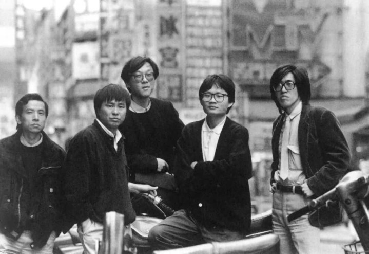 1988年,新加坡,小野(左起)、朱天文、吴念真、侯孝贤、杨德昌接受电台访问。