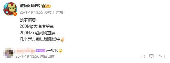 日前,数码博主“数码闲聊站”再次曝光了一款新机的独家信息。据其称,该新机正在测试2亿像素超大底潜望长焦镜头和200Hz+超高刷直屏,甚至该机还有多个新配置方案也在进一步测试中。而根据目前配备高刷屏的品牌来看,配备165Hz高刷屏的机型,基本都来自绿厂(包括OPPO、一加和真我),再结合该条微博下的网友评论来看,正在测试该配置的新机有可能来自 @一加手机 ,甚至可能是一加16系列的配置。