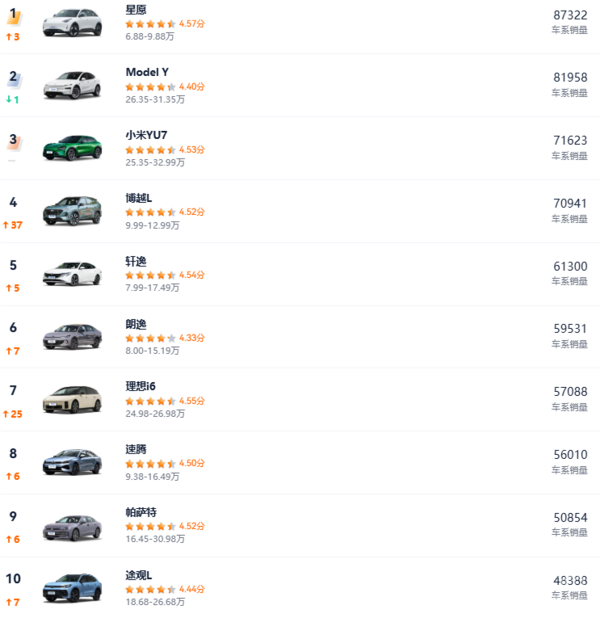 榜单第四至第十名离别为吉祥博越L、日产轩逸、天下朗逸、理思i6、天下速腾、天下帕萨特和天下途不雅L。全体来看,榜单头部同期出现了传统燃油车、结伙品牌经典车型与新兴新动力车型,市集竞争呈现多元化态势。其中,新动力车型继续保握报复地位开云官方app,而天下品牌凭借多款车型在榜单中后段保握了认知的市集份额。