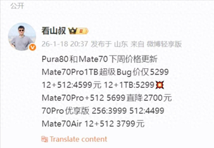 通过推出 Mate70 Pro 优享版(3999元起)和 Mate70 Air(3799元起)。