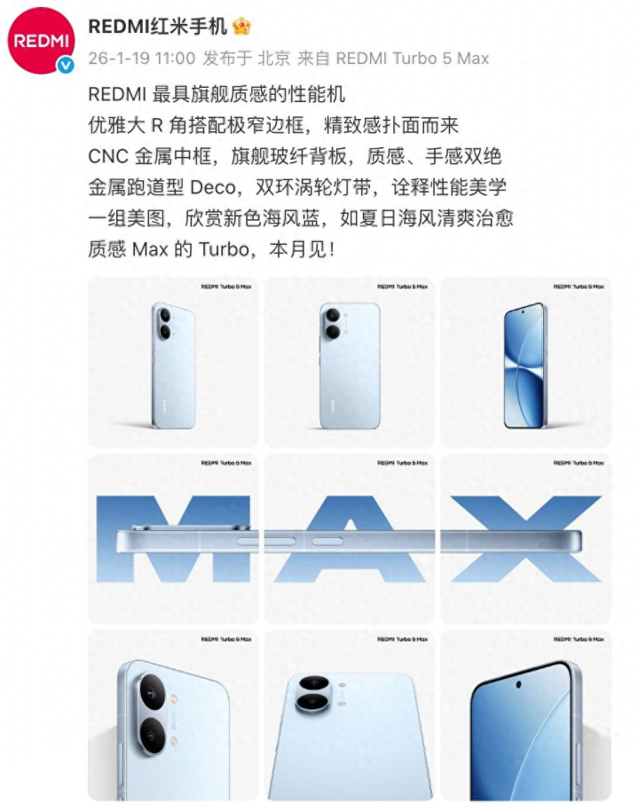 开云(中国)官方app下载 REDMI Turbo 5 Max外观公布: 极窄边框+双环涡轮灯带