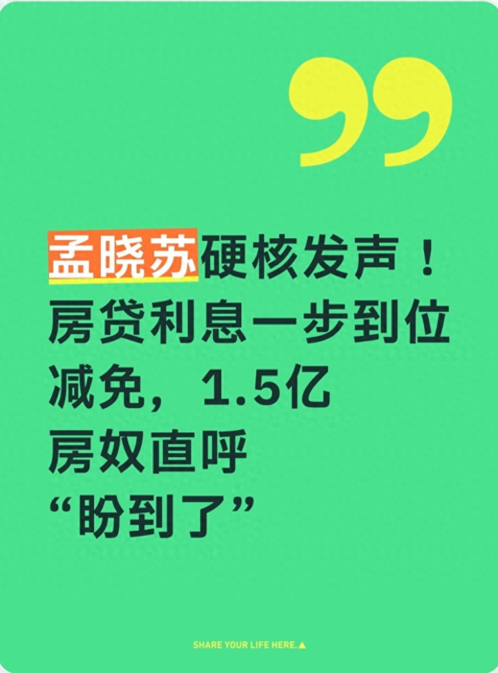 开云官方app 孟晓苏发声! 房贷利息一步到位减免, 1.5亿房奴直呼“盼到了”
