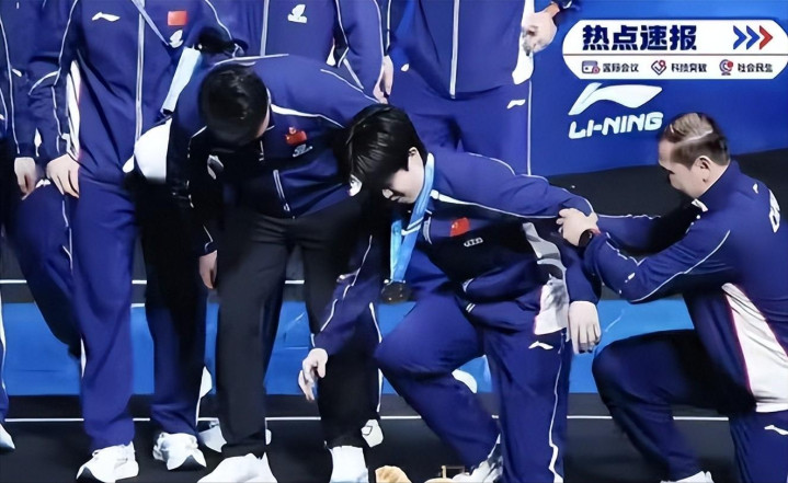 其实早在澳门全国杯受奖时,就有一个细节被镜头捕捉到,仅仅其时公共皆千里浸在夺冠的昂扬里,没太往深处念念,受奖端正后,国乒队员通盘合影眷恋。