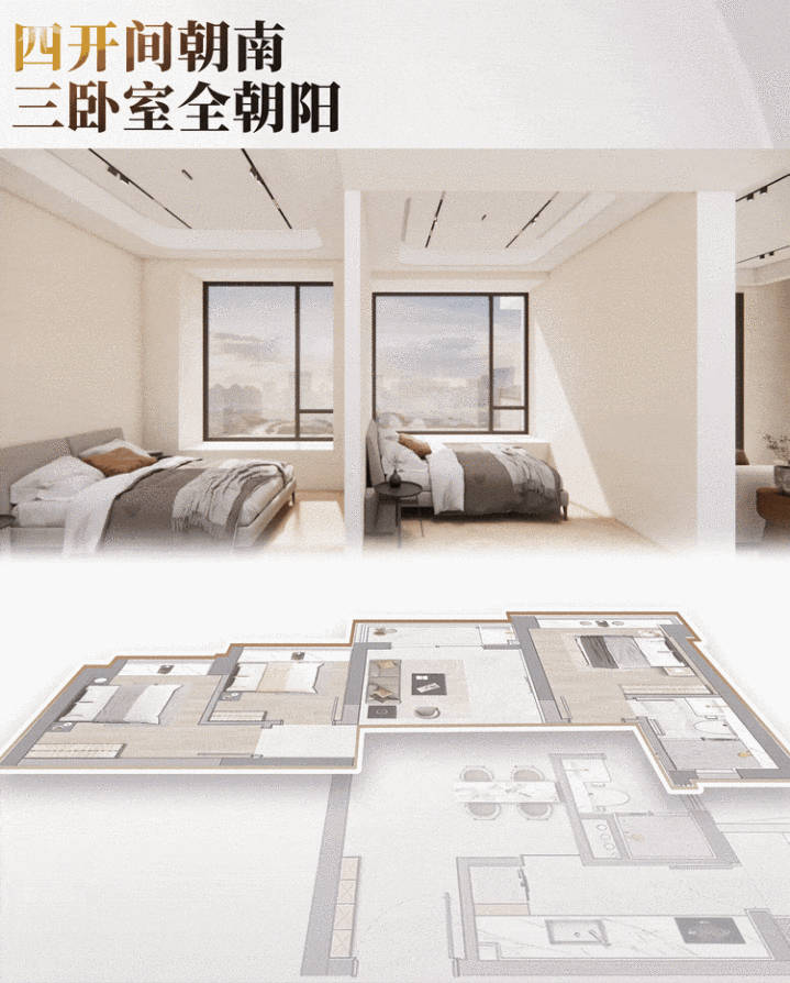 全新116㎡顶流四房,以“270°三面单边+南北对流+三阳台”的豪宅规格,重塑品质标杆!