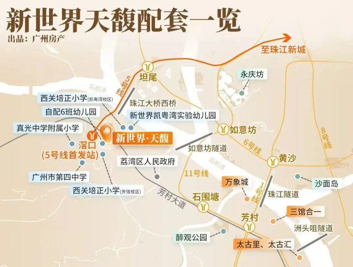 约200米到地铁5号线滘口站,一轨直达珠江新城。学校距小区仅200米左右,西关培正小学芳信校区今年开学,目前招生范围已划定。