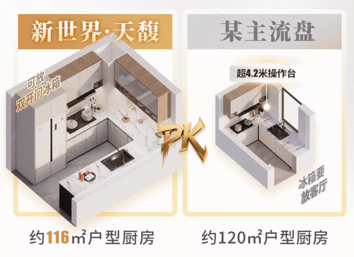 第三,幸福晋阶。新世界认为,厨房是家庭的能量中心,并嵌入了很多人性化细节。