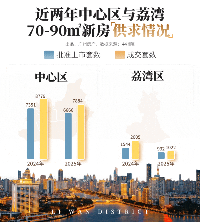过去一年多,这种面积段产品,在荔湾行情非常火爆,一有货就卖断。第三方数据显示,近两年,片区这种产品明显供不应求。