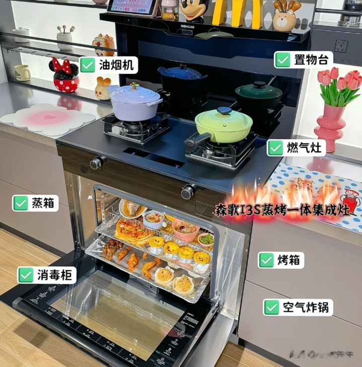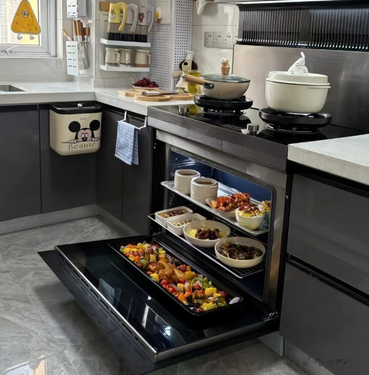 集成灶的功能也足够强,里面自带蒸烤箱,能制作多种美食,一家人聚在一起很享受。