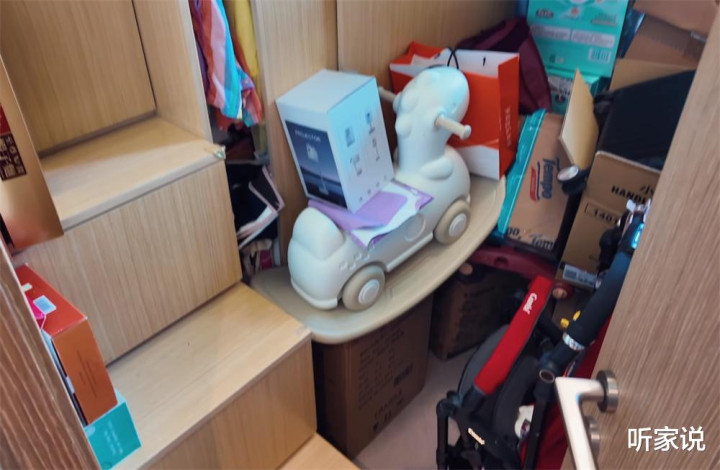 入住头一年还好,家里只是有点乱,但就在前年孙女降生,要帮孩子带孙女的老两口,一时间乱了家里收纳的阵脚,家里的各类杂物越来越多,日积月累,竟然堆放到了无处下脚的程度。
