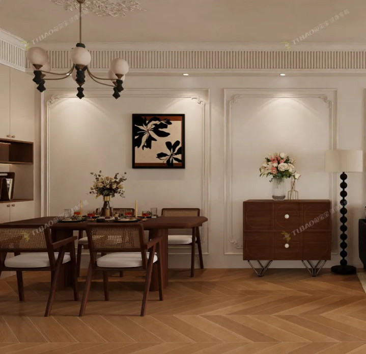 复古风的餐桌椅成为视觉焦点。