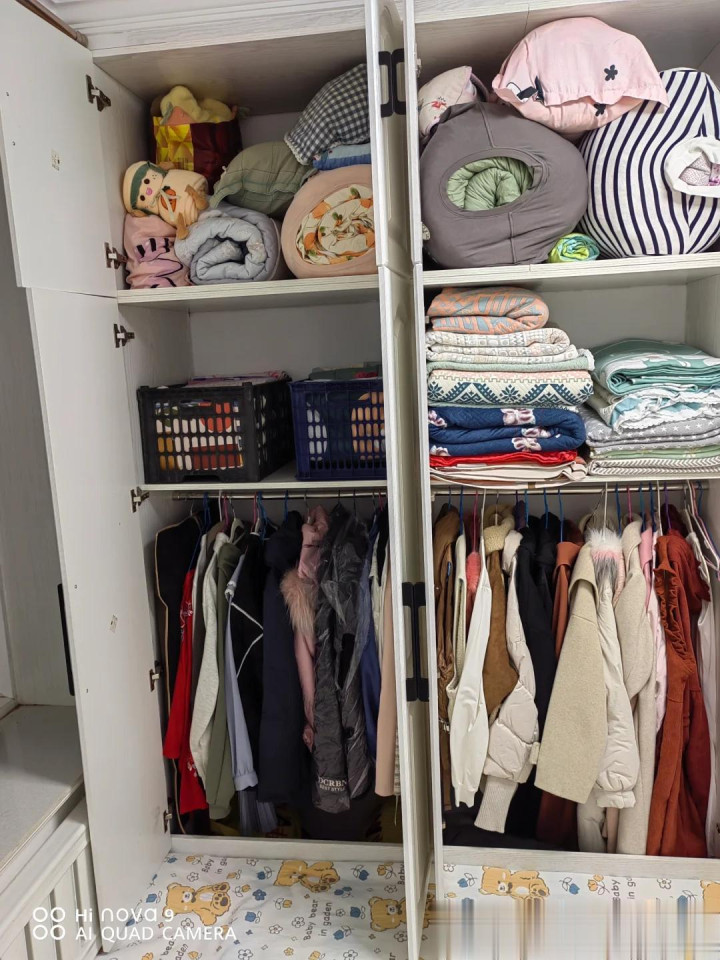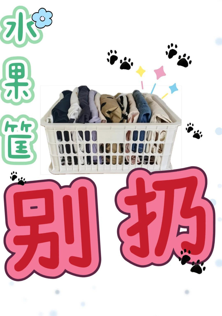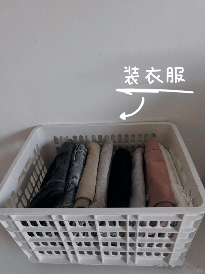 就好比我们的衣柜,上面挂衣服,下面的空间容易被浪费,这个时候我们就可以用水果筐来收纳一些需要叠起来的衣服,这样翻找也不会乱了。