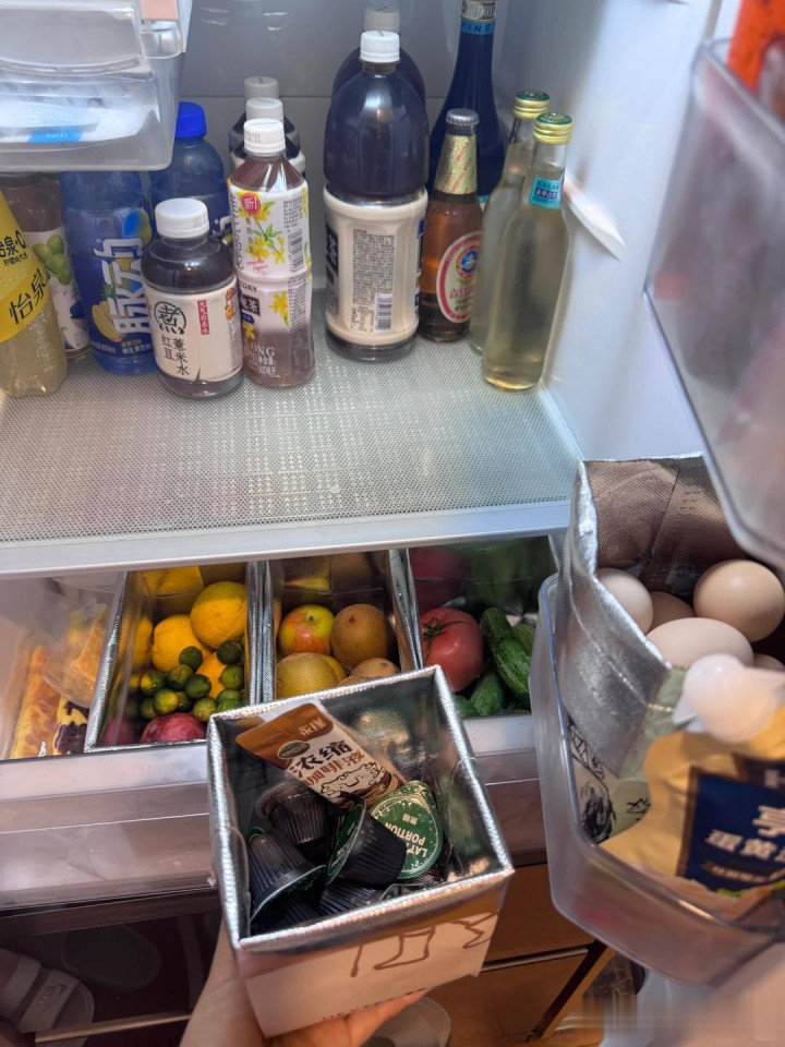 放在冰箱柜门上,也可以收纳调味料和袋装的咸菜,冰箱内部也整整齐齐了。